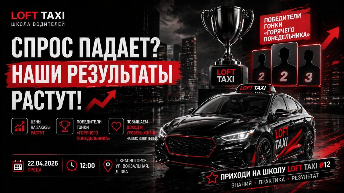 👀 А по факту всё интереснее: стоимость заказов подросла, а значит деньги на рынке есть. Вопрос, кто их забирает. И вот тут уже без теории — наши новые победители «Горячего понедельника» всё сами показали делом 🏆🔥 Для нас это важно не только как красивая внутренняя история. Мы в LOFT TAXI правда смотрим шире: хотим, чтобы наши водители больше зарабатывали, спокойнее жили и чувствовали опору, а не вечную гонку на износ ❤️🚕 Поэтому на Школе LOFT TAXI #12 соберёмся и коротко, по сути, разберём: — где в мае реально лежит доход; — как брать больше в пики и праздники; — как хороший сервис в поездке превращается в хорошие чаевые 💸 Плюс — наградим сильнейших. Так что будет и польза, и правильная атмосфера ⚡ 📅 22.04.2026 ⏰ 12:00 📍 Красногорск, ул. Вокзальная, д. 39А 📞 +7(916)277-99-79 📩 Telegram| WhatsApp| MAX Найдите свою идеальную машину здесь: 🌐 Сайт аренды 🚕 Яндекс Гараж Сообщество и новости LOFT TAXI⬇️ 📱 Чат поддержи водителей 💬 Чат общения LOFT TAXI 📱 Вконтакте 📱 Дзе