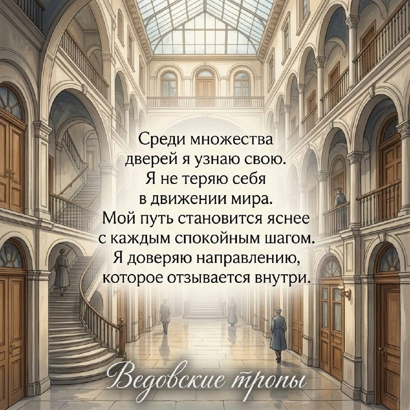 Сегодняшний день — старинная галерея с длинными переходами, коридорами, стеклянной крышей, лестницами, балконами и множеством дверей. Здесь всё зовёт двигаться дальше: разговоры отражаются от стен, в окнах дрожит свет конца апреля, кто‑то проходит мимо, где‑то открывается новая дверь, где‑то мелькает мысль, которую хочется сразу поймать. Но это пространство не про хаос. Оно про умение идти дальше, не теряя внутреннюю нить. Это место, где важно не заходить в каждую открытую комнату. Не реагировать на каждый сигнал. Не пытаться прожить сразу все возможности дня. А выбрать один коридор, один маршрут, одну мысль, которая действительно ведёт дальше. День как пространство, в котором многое хочется попробовать, обсудить, понять, проговорить. Но настоящая сила этого дня — не в количестве впечатлений, а в способности усваивать только то, что действительно подходит. Сегодня благоприятны: Короткие поездки, прогулки, смена обстановки. Письмо, заметки, сбор мыслей и идей. Один главный фокус вмест