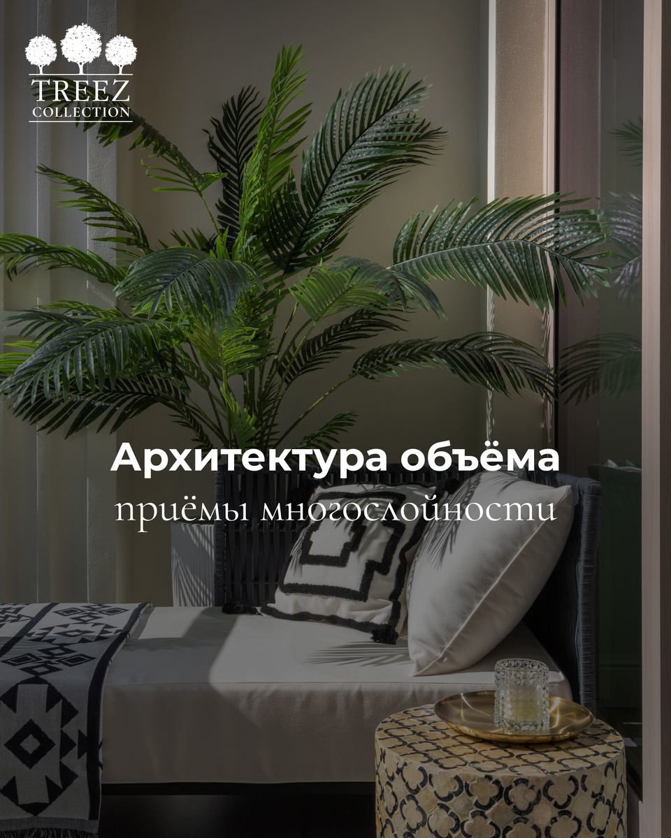 Визуальный объём пространства — это ощущение его глубины, массы и наполненности. Он складывается в основном из материалов отделки, света и общей палитры интерьера. Озеленение занимает лишь около четверти предметного наполнения, но именно оно завершает восприятие пространства и способно формировать до половины его визуального объёма. Поэтому кашпо — не второстепенный элемент дизайна. Их форма, размер и фактура задают базу, а растения работают как следующий слой, добавляя глубину и естественную динамику. Как управлять этим объёмом в интерьере — подробно рассказываем в карточках↖️
