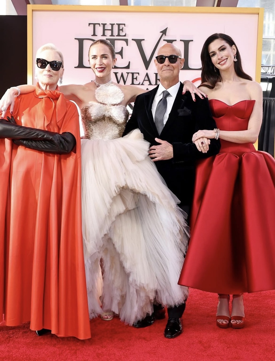- Мэрил Стрип, вновь воплотившая образ Миранды Пристли, появилась в элегантном чёрном наряде от Givenchy — сдержанном, но невероятно мощном, как и сама героиня. Её появление вызвало аплодисменты и вспышки сотен камер.