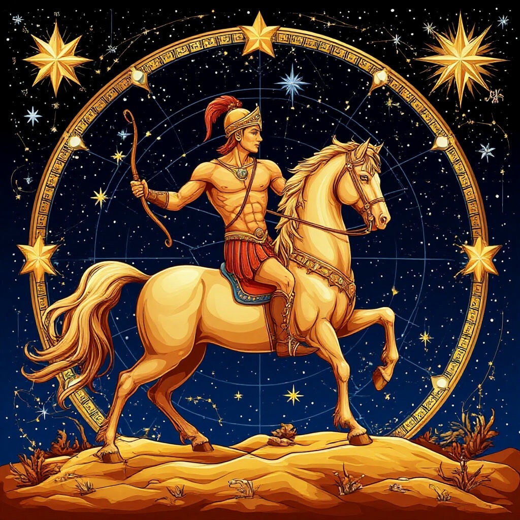 В один майский вечер, когда первые звёзды только начали мерцать на небосводе, в маленьком городке на окраине леса произошло нечто невероятное. С небес спустился огненный Стрелец — мистический воин, чьё тело состояло из живого пламени. Его глаза сверкали ярче звёзд, а за спиной расстилался алый плащ из искр.