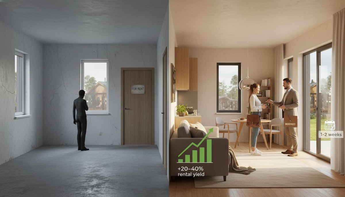 🧾 Рынок считывает «голые стены» как полупродукт: арендаторы додумывают мебель, технику и дополнительные траты. В итоге либо торгуются, либо идут к объекту «можно заехать завтра». Пример: меблированный объект часто бронируют ещё до показа. Мы в Box House видим: меблировка и грамотная подача повышают доходность на 20–40% и сокращают простои до 1–2 недель. 🛋️ Вывод: вложиться в готовое решение выгоднее — вы получаете цену и скорость. А вы бы сдавали пустую или готовую к заезду?