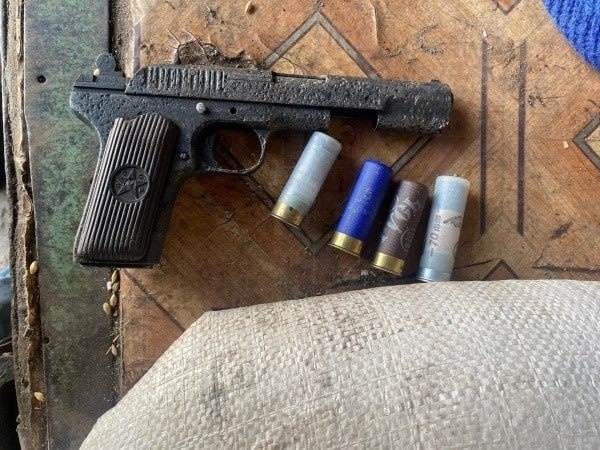 Π½Π° Π²ΡΡΠ²Π»Π΅Π½ΠΈΠ΅ ΠΈ ΠΏΡΠ΅ΡΠ΅ΡΠ΅Π½ΠΈΠ΅ ΡΠ°ΠΊΡΠΎΠ² Π½Π΅Π·Π°ΠΊΠΎΠ½Π½ΠΎΠ³ΠΎ ΠΎΠ±ΠΎΡΠΎΡΠ° ΠΎΡΡΠΆΠΈΡ ΠΈ Π±ΠΎΠ΅ΠΏΡΠΈΠΏΠ°ΡΠΎΠ², ΡΠΎΡΡΡΠ΄Π½ΠΈΠΊΠΈ Π£ΠΏΡΠ°Π²Π»Π΅Π½ΠΈΡ ΡΠ³ΠΎΠ»ΠΎΠ²Π½ΠΎΠ³ΠΎ ΡΠΎΠ·ΡΡΠΊΠ° ΡΠ΅ΡΠΏΡΠ±Π»ΠΈΠΊΠ°Π½ΡΠΊΠΎΠ³ΠΎ ΠΠΠ Π²ΠΌΠ΅ΡΡΠ΅ Ρ ΠΈΡΠ°Π»ΠΊΠΎΠ²ΡΠΊΠΈΠΌΠΈ ΠΊΠΎΠ»Π»Π΅Π³Π°ΠΌΠΈ ΠΎΠ±Π½Π°ΡΡΠΆΠΈΠ»ΠΈ Π² Π΄ΠΎΠΌΠ΅ ΠΈ ΡΠ°ΡΠ°Π΅ 55-Π»Π΅ΡΠ½Π΅Π³ΠΎ Π±ΠΎΠ»ΡΡΠ΅ΠΈΠ³Π½Π°ΡΠΎΠ²ΡΠ° ΠΏΠΈΡΡΠΎΠ»Π΅Ρ Π’Π’ ΠΈ 4 ΠΏΠ°ΡΡΠΎΠ½Π° 12 ΠΊΠ°Π»ΠΈΠ±ΡΠ°. ΠΠ°ΠΊ ΡΠ°ΡΡΠΊΠ°Π·Π°Π» ΡΠ΅Π»ΡΡΠ°Π½ΠΈΠ½, ΠΏΠΈΡΡΠΎΠ»Π΅Ρ ΠΎΠ½ Π½Π°ΡΡΠ» ΠΎΠΊΠΎΠ»ΠΎ 15 Π»Π΅Ρ Π½Π°Π·Π°Π΄ Π²ΠΎ Π²ΡΠ΅ΠΌΡ ΠΏΠΎΠΈΡΠΊΠ° ΠΌΠ΅ΡΠ°Π»Π»ΠΎΠ»ΠΎΠΌΠ° Π½Π΅Π΄Π°Π»Π΅ΠΊΠΎ ΠΎΡ ΡΠΎΠ΄Π½ΠΎΠΉ Π΄Π΅ΡΠ΅Π²Π½ΠΈ, Π° ΠΏΠ°ΡΡΠΎΠ½Ρ - Π² ΠΏΡΠΎΡΠ»ΠΎΠΌ Π³ΠΎΠ΄Ρ Π½Π° Π±Π΅ΡΠ΅Π³Ρ ΠΏΡΡΠ΄Π°. Π‘Π΅ΠΉΡΠ°Ρ ΠΏΠΎ ΡΡΠΎΠΌΡ ΡΠ°ΠΊΡΡ Π²ΠΎΠ·Π±ΡΠΆΠ΄Π΅Π½ΠΎ ΡΠ³ΠΎΠ»ΠΎΠ²Π½ΠΎΠ΅ Π΄Π΅Π»ΠΎ ΠΏΠΎ ΡΡ. 222 Π£Π Π Π€. Π ΠΏΠΎΠ»ΠΈΡΠΈΠΈ ΠΎΡΠΌΠ΅ΡΠΈΠ»ΠΈ, ΡΡΠΎ Π΅ΡΠ»ΠΈ Π±Ρ ΠΌΡΠΆΡΠΈΠ½Π° Π΄ΠΎΠ±ΡΠΎΠ²ΠΎΠ»ΡΠ½ΠΎ Π²ΡΠ΄Π°Π» ΠΎΡΡΠΆΠΈΠ΅ ΠΈ ΠΏΠ°ΡΡΠΎΠ½Ρ ΠΏΠΎΡΠ»Π΅ Π½Π°Ρ