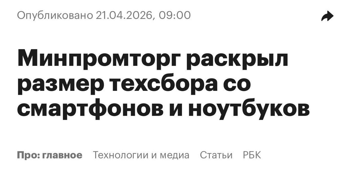 Предварительные ставки: 750 рублей за смартфон и 1500 рублей за ноутбук. Сбор будет взиматься до попадания товара в магазин, что затронет оборотные средства компаний и может привести к росту цен. Максимальный размер сбора – 5000 рублей за единицу продукции. ⚡️ Первый Бизнес в MAX