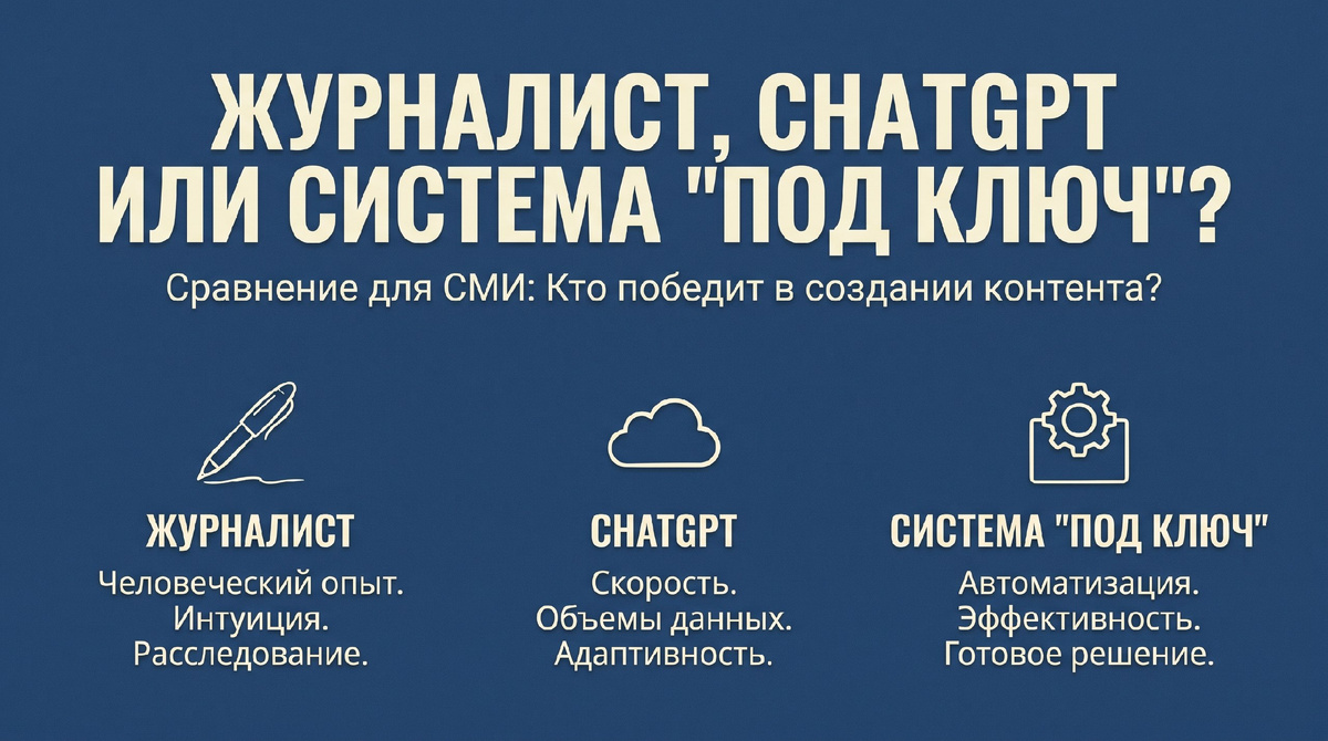 Если поток 150–300 новостей в месяц и рерайт занимает больше половины времени команды – ChatGPT руками даст ускорение, но добавит проблему фактических ошибок. Автоматизированный пайплайн со встроенным фактчеком в этой точке работает лучше и по деньгам, и по качеству.