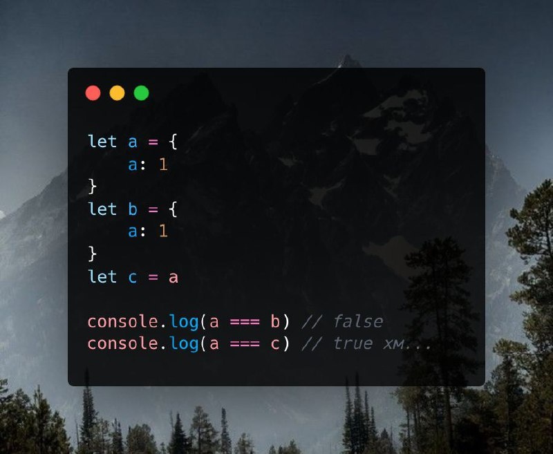 Почему результатом сравнения двух похожих объектов является false? В JS объекты и примитивы сравниваются по-разному. Примитивы сравниваются по значению. Объекты — по ссылке или адресу в памяти, где хранится переменная. Вот почему первый console.log возвращает false, а второй — true. Переменные «a» и «c» ссылаются на один объект, а переменные «a» и «b» — на разные объекты с одинаковыми свойствами и значениями.