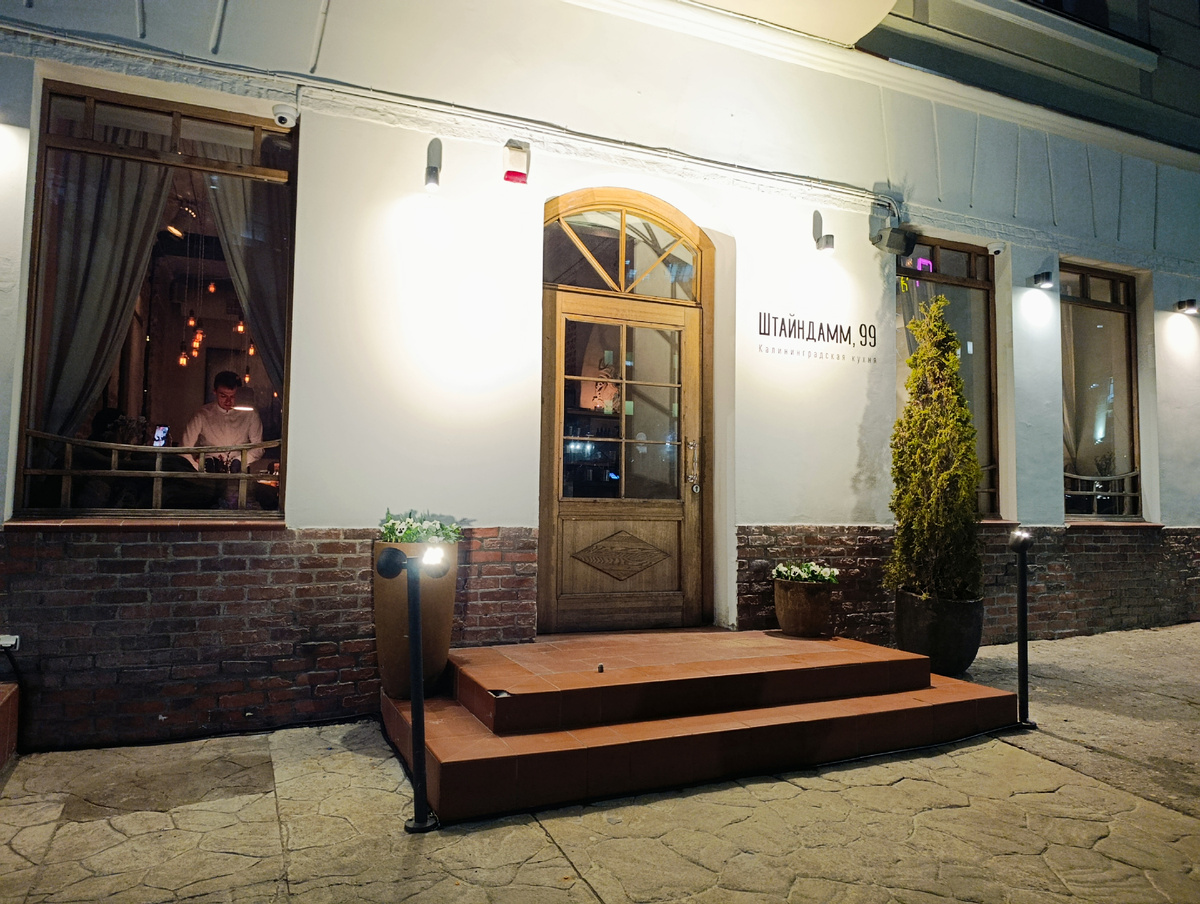 А давайте сначала разберем, почему же такое название у ресторана? Штайндамм — исторический район Кёнигсберга (сейчас — Калининград), возникший в середине XIII века, переводится с немецкого как «каменная дамба». Название ресторана «Штайндамм, 99» происходит от довоенного адреса здания, в котором он расположен, оно чудом уцелело во время бомбардировок во время Второй мировой войны.