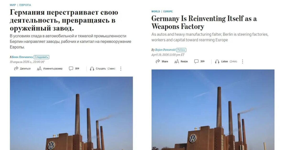 По оценкам СМИ, крупнейшие немецкие автоконцерны фиксируют снижение доходов: Mercedes-Benz — около 50%, Volkswagen — свыше 40%. Последний уже говорит о сокращении десятков тысяч сотрудников к 2030 году. Премиальный сегмент Porsche потерял 91–98% прибыли (до 310 млн евро после налогов). Но вместо того, чтобы решать структурные проблемы, Берлин нашёл более «простое» решение - заместить падение в гражданских отраслях ростом оборонного производства: → Schaeffler производит двигатели для дронов, системы для бронетехники и компоненты для военной авиации; → Volkswagen ведёт переговоры с израильскими компаниями (включая Rafael) о производстве компонентов для Iron Dome к 2027 году на заводе в Оснабрюк; → Несколько немецких компаний ввели третью смену для изготовления боеприпасов для Украины. Причём речь не только о деньгах, но и о системной перенастройке государства. В прошлом году в Германии было принято временное (до 2035 года) законодательство, фактически упрощающее процедуры гособоронзака
