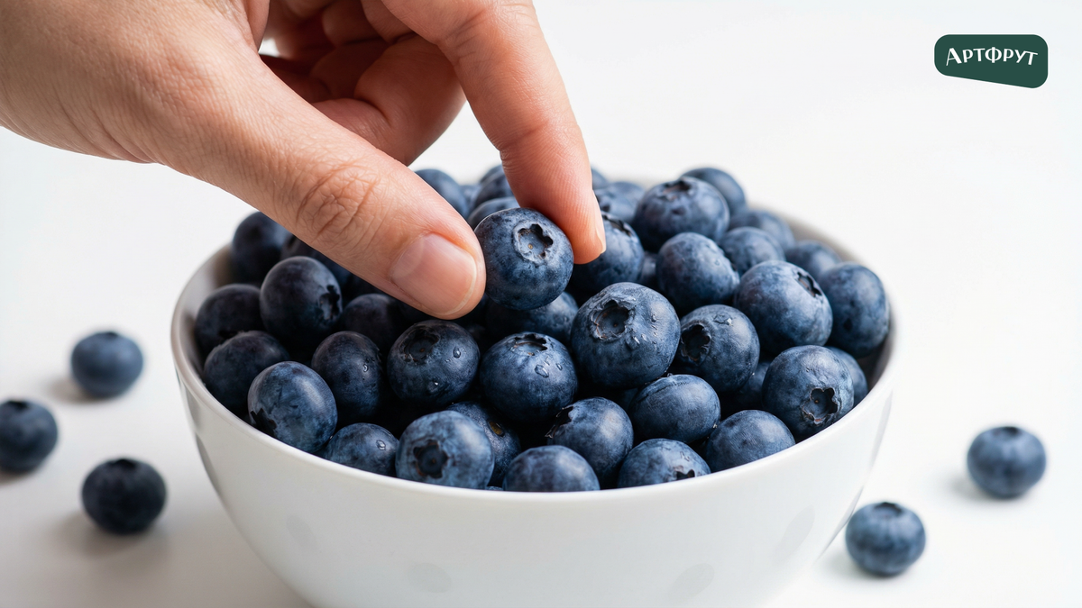 Насыщенный оттенок голубике придают антоцианы — природные пигменты с антиоксидантными свойствами. Они «окрашивают» ягоду в тёмно-синий и фиолетовый цвет и делают её более устойчивой к внешним условиям. Например, от яркого солнца: пигменты частично поглощают ультрафиолет, поэтому ягода меньше повреждается и легче переносит жару и перепады температуры. Чем темнее и равномернее цвет, тем больше в ягоде этих веществ. Например, у недозрелой голубики оттенок светлее и менее насыщенный, а у спелой — глубокий, почти чернильный. Если раздавить ягоду, сок легко оставляет следы на пальцах или ткани — это как раз работа антоцианов. Антоцианы влияют не только на цвет ягоды, но и связаны с поддержанием здоровья сосудов и мозга. Считается, что они помогают легче переносить усталость и стресс. Ещё голубику часто называют полезной для зрения. В этом есть доля правды: она помогает глазам меньше уставать, особенно при длительной работе за экраном. Чтобы был заметный эффект, голубику лучше есть регулярно