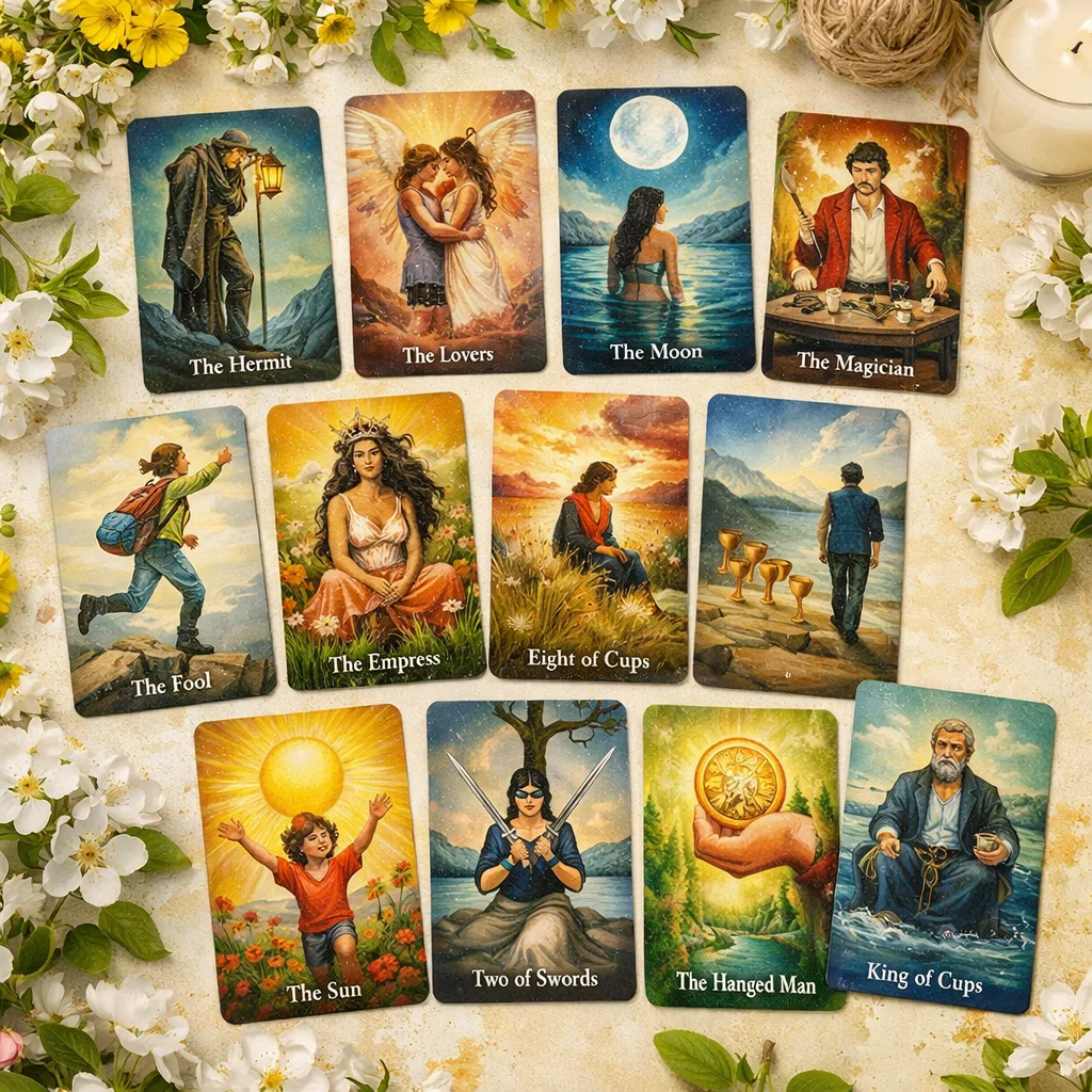Вот здесь начинается самая сильная часть расклада, потому что он не оставляет вас в теме боли. Он показывает выход. Причём выход не декоративный, не из серии «когда-нибудь станет легче», а вполне конкретный: тяжёлая ноша уходит, тучи расходятся, душевная сцепка, которая держала горло и сердце, постепенно ослабевает, и в жизнь начинает входить другое качество событий. Очень важный знак — возвращение своего. То, что было выбито, разбросано, отнято, задержано, начинает собираться обратно. Это касается не только любви, но и внутреннего равновесия, уверенности, финансов, жизненного тонуса, ощущения, что вы снова хозяйка собственной судьбы. Расклад показывает, что период, когда вы не управляли событиями, заканчивается. Вы выходите из лабиринта. Вы больше не идёте вслепую по коридору чужих влияний, где всё время казалось, что либо ещё чуть-чуть и повезёт, либо всё навсегда потеряно. Нет. Здесь начинается восстановление. Причём очень красиво показан новый мужчина или новая мужская фигура в судьбе: человек, рядом с которым исчезает душевная судорога, исчезает постоянное ожидание беды, исчезает ощущение, что любовь надо выцарапывать. Он не лечит вас как спасатель, а просто входит в жизнь так, что становится легче дышать. С ним нет той мутной борьбы, которая годами выматывает женщину. Он даёт чувство ясности, уважения, устойчивости и того самого простого женского счастья, которое не кричит, а согревает. Отдельно расклад подчёркивает и восстановление удачи: идут хорошие новости, документы, предложения, рабочие возможности, возврат денег или хотя бы прекращение утечки ресурса. То есть закрывается не только сердечная тема, но и дыра в жизненной системе в целом. И вот это главный итог: чужое вмешательство не сломало вашу судьбу. Оно задержало, исковеркало, заставило пройти через тёмный коридор, но не отменило вашего счастья. Вы не остались в руках у этой истории. Наоборот, вы выходите из неё уже другой — более зрячей, более сильной, более точной. А всё, что пыталось удержать вас в боли, начинает получать обратный ход: не вы несёте чужой мрак дальше, а он уходит туда, откуда пришёл. И это, на мой взгляд, самый мудрый финал такой темы: правда вскрыта, чужое влияние названо, старая петля распущена, а у вас в руках остаётся не страх, а ключ. Ключ к спокойствию, к возвращению своей жизни и к тому союзу, который уже не будет построен на боли.