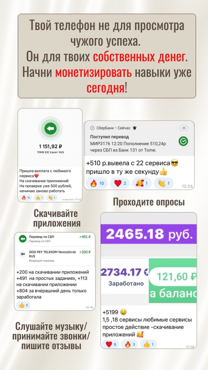Начни использовать его иначе. Листаешь ленту? Поздравляю. А кто-то прямо сейчас эти же 30 минут превращает в деньги. Смотрю на друзей, знакомых – и картина не меняется годами. Январь: «Как хочется на море, но денег нет». Июнь: «Кредиты и рутина заела, хочется всё бросить». Декабрь: «С января точно начну новую жизнь». Знакомо до боли? Мы коротаем время в очереди к стоматологу – смотрим на блогеров. Едем в транспорте – а там Reels с айфонами и квартирами. Мы уже давно знаем, что онлайн-заработок – не миф. Но продолжаем просто наблюдать. Почему не пробуем? Страх. Стандартный набор: «Вдруг не получится?», «А что скажут другие?», «Я же ничего не умею». Страх – это просто химия мозга на новое. Твой организм думает, что спасает тебя. А на деле – оставляет в зоне комфорта, где нет ни денег, ни моря. Что будет, если не пробовать? Год. Два. Пять. Потеряешь время. Единственный ресурс, который не вернёшь. Будешь смотреть на чужие успехи с горечью и злостью. Всё ещё в точке «А», мечтая о