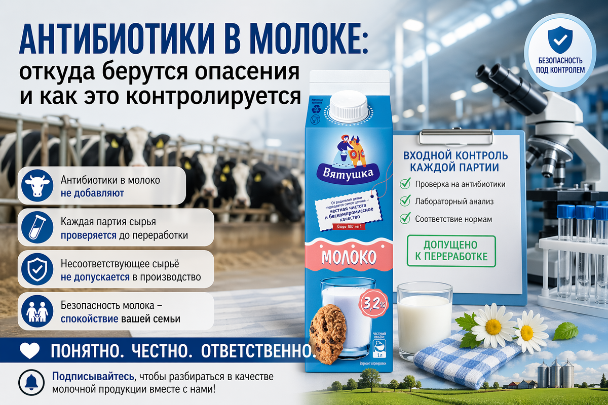 Тема антибиотиков в молоке волнует покупателей уже давно. Достаточно увидеть тревожный заголовок или спор в интернете — и сразу появляется вопрос: а можно ли вообще быть уверенным в качестве молочных продуктов? Вокруг этой темы много домыслов, поэтому давайте разберёмся спокойно и по существу. Для начала важно понимать: на молочном производстве антибиотики в молоко никто не добавляет. Они могут появиться в сыром молоке только в одном случае — если животное лечили, а молоко после лечения по какой-то причине не было вовремя исключено из пищевой цепочки. То есть вопрос здесь не в «добавлении» чего-то на производстве, а в том, насколько строго организован контроль сырья ещё до начала переработки. Именно поэтому на Кировском молочном комбинате действует жёсткий входной контроль молока. Согласно ГОСТ Р 52054-2003 «Молоко коровье сырое», проверка сырого молока на антибиотики должна проводиться не реже одного раза в 10 дней. Но на Кировском молочном комбинате этого считают недостаточным. Поэто