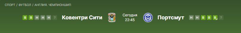Ковентри Сити подходит к матчу в статусе лидера Чемпионшипа. Команда уже оформила повышение после ничьей с Блэкберном, а теперь дома будет играть за первое место и красивую финальную точку в сезоне. При этом форма хозяев чуть просела: три подряд ничьи говорят о том, что команда не идет на максимуме, хотя по качеству игры и глубине состава все еще выглядит сильнее соперника. У Портсмута ситуация обратная: команда выдала мощный отрезок, выиграв три подряд матча и почти сняв вопросы о выживании. Важный момент — гости подходят к игре с серией уверенных результатов против сильных соперников, но после тяжелого сезона их мотивация уже не выглядит такой же острой, как у хозяев, которые хотят завершить чемпионат на первом месте. Для Ковентри этот матч — не просто формальность после выхода в элиту. Это игра за титул, домашнюю аудиторию и подтверждение статуса сильнейшей команды лиги. На таком фоне лидеры обычно стараются забрать мяч, контролировать темп и не давать сопернику пространства. Портс