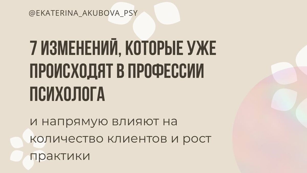 1. Рост тревожности и неопределенности в мире Запрос на психологическую помощь увеличивается и становится сложнее, так как у клиентов: На сегодняшний день львиную долю запросов составляют пограничные клиенты, онкология и другие тяжелые ситуации по здоровью, большое количество депрессивных состояний - все это требует определенных знаний от психолога. Психологу уже недостаточно базовых инструментов, в каждом отдельном случае необходима индивидуальная "дорожная карта" Люди дольше принимают решение о терапии, об участии в терапевтических группах и тд. Чаще сравнивают специалистов. Чаще «думают» и откладывают. Выигрывают те, кому уже доверяют, кого передают "из рук в руки" как компетентного и глубокого специалиста Психологов становится больше (мы не говорим о качестве), это уже тенденция не первого года. Я вижу, что чем больше специалистов - тем больше растет их разрыв в профессиональном уровне. У инстаграмных психологов часто классный маркетинг, но маленький терапевтический опыт и скудны