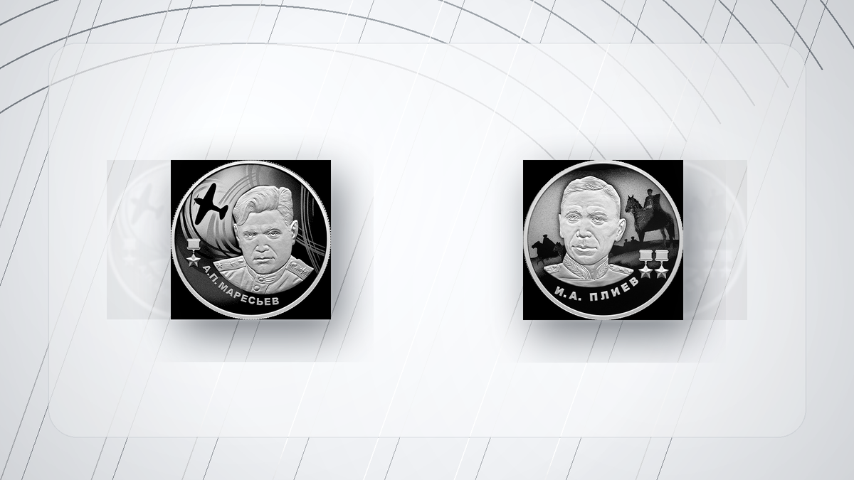 Банк России выпустил в обращение две памятные серебряные монеты номиналом 2 рубля из серии «Герои Великой Отечественной войны 1941–1945 гг.». Они посвящены И.А. Плиеву и А.П. Маресьеву — Героям Советского Союза, чьи судьбы связаны с мужеством, военной доблестью и исторической памятью.