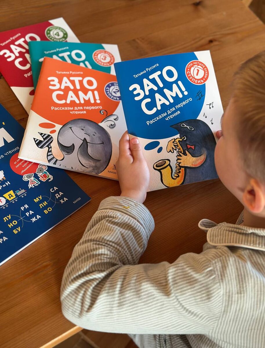 🟠🔵🟤⚪️🟠🔵🟤⚪️🟠 Кажется, мы наконец дошли до этапа «я сам почитаю» 😌 Сын уже чуть больше месяца ходит на скорочтение, и прогресс прям заметный. Поэтому сейчас активно подключаем простые книжки для первого чтения. Взяли серию «Зато сам!» от МИФ. Они идут по ступеням - от совсем простого к более сложному. Первую мы как-то очень быстро прошли, сейчас уже берём следующую. И мне понравилась одна простая вещь - в конце каждого рассказа можно поставить галочку ✔️ И всё... ребёнок уже читает следующий, чтобы «добить» ещё одну 😄 Ещё взяли тетрадь «Играй-читай» (280₽) там задания на развитие навыков чтения. Для меня сейчас главное, чтобы ему было не сложно и не скучно. И я прям ловлю себя на мысли - как это круто наблюдать, когда ребёнок начинает читать 🫀 OZON | ~ 230₽