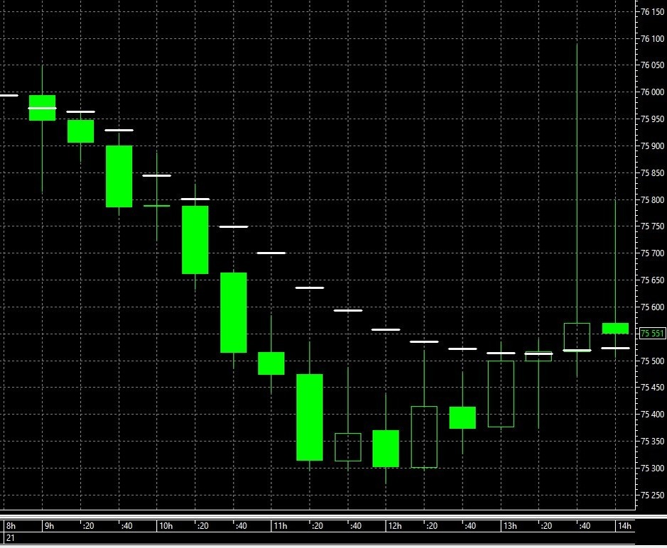 Хвосты Интересный сегодня день Si-6.26 по 20-минуткам (USD/RUB, экспирация 18 июня) Белые бары — это средневзвешенное значение В апреле тренд плавно снижался Сегодня появились покупки: хвосты вверх, на 76 руб. за доллар Возможно, скоро узнаем причины (новости с бюджетным правилом, которое могут раньше чем в июле запустить или ещё что — то интересное). Как обычно, сначала движение, потом понимание причины этого движения