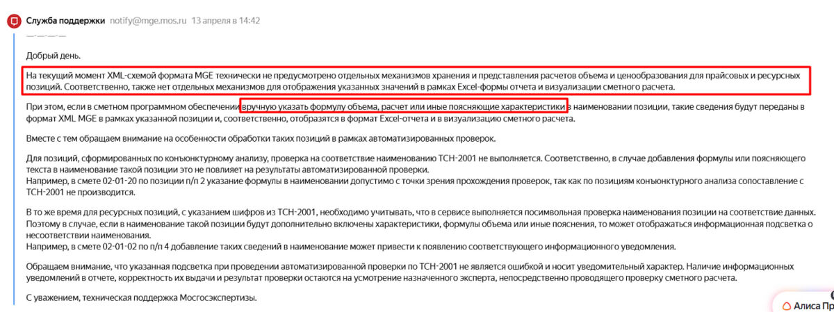 ... Пока космические корабли бороздят просторы галактики, инженер сметного дела всё больше загоняется в рабское положение АВТОМАТИЗАЦИЕЙ. Наше всё - XML (MGE) не показывает расчёты объёмов работ и ценообразование, которые специалист сметного дела своими заботливыми руками круглосуточно расписывает по требованиям экспертизы в программе. Расписанное ВРУЧНУЮ не выводится в формат XML, кто бы мог подумать ... А - Автоматизация. Для того, чтобы выполнить требования Экспертизы, сметчик ВТОРОЙ раз ВРУЧНУЮ вбивает те же расчёты в другие графы смет, не предназначенные для этого. Может кто прочитает это сообщение и примет управленческое решение ... Надо или доработать СРОЧНО xml схему, чтобы расчёты переносились из программы, или не обращать внимание на эту, не зависящую от спеца, проблему. Ну, а пока с трибун раздаются лозунги про рост производительности, ещё действующие сметчики придавлены очередной плитой автоматизации. Официальный ответ приложен скрином к статье. ПЫ.СЫ. благодарю не