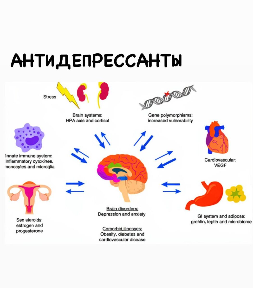 В частности, помогаю людям уходить с антидепрессантов. Это долгая, дорогая, кропотливая работа. Но результаты говорят сами за себя. Сегодня мне приходит приглашение на вебинар с темой: антидепрессанты за пределами депрессии. Во втором фото написано за какими пределами. Я так понимаю, скоро ими будут лечить и Альцгеймер, и менопаузу, что там дальше по списку? Бессонница -антидепрессанты. Голова болит -антидепрессанты. Просто плохо себя чувствуешь - антидепрессанты. Мало того, что они в ряде случаев попросту не работают, так с них ещё и так просто не сойти. Разбираться глубже не хочется? Проще найти волшебную таблетку? Да, в некоторых случаях они нужны. Но в НЕКОТОРЫХ. Что влияет на появление депрессии: — Окружающая среда. Качество воздуха, воды, еды, уровень токсической нагрузки, социальная изоляция, хронический шум и световое загрязнение. Всё это напрямую влияет на нейровоспаление и нейротрансмиттерный баланс. А если еще учесть, что наши органы детокса не справляются, то пол