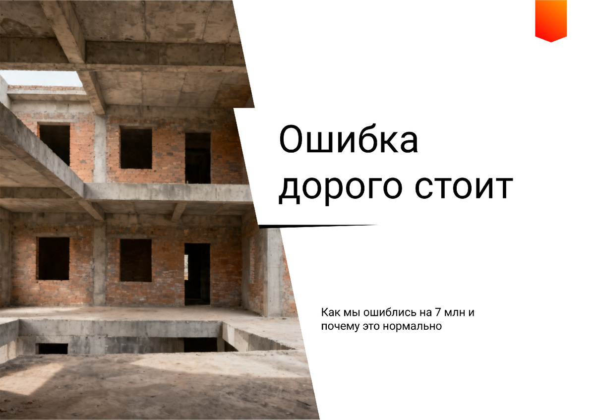 Ошибка дорого стоит Как мы ошиблись на 7 млн и почему это нормально Был у нас объект: коттедж 241 м2, коробка без отделки, в пригороде. Первый отчёт о цене выдал 16 400 000 ₽. Мы оценили ещё раз трезво ситуацию. Итог: 9 500 000 ₽. Разница в 42%. Вот почему так случилось - и почему это важно понимать каждому продавцу. Ошибка №1. Смотрели на Тверь, а продавать надо в деревне В первый раз взяли аналоги из города: евроремонт, городские коммуникации, асфальт под окнами. А объект - в сельском поселении, 15 км от Твери. Там готовый дом 160 м2 с газом стоит 7,5 млн. База должна была быть не 85 тыс/м2, а 50-54 тыс/м2. Завышение на ~70% только из-за неправильной выборки. Ошибка №2. «Готовность 80%» - красивая цифра, но неправда Коробка без окон, без дверей, без коммуникаций. Это не 80%, а реальные 40–45%. Фундамент, стены, крыша - это только полдела. Ошибка №3. Занижена корректировка на «достройку» В первом отчёте отделка «минус 14%». По факту покупателю нужно 4-6 млн на чистовую + 1-2 млн на ко