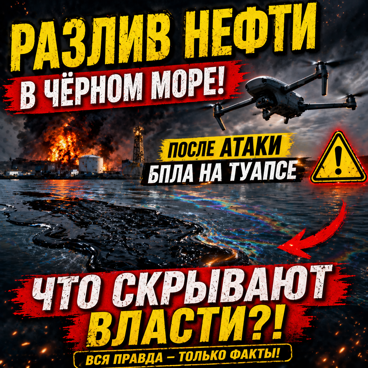 В акватории Чёрного моря рядом с портом города Туапсе зафиксирован разлив нефтепродуктов после атаки беспилотников на инфраструктуру нефтяного терминала. Инцидент произошёл после удара БПЛА в ночь на 16 апреля 2026 года. По данным оперативного штаба Краснодарского края, в результате атаки была повреждена инфраструктура морского терминала. Позже спутниковые снимки показали нефтяное пятно в Чёрном море примерно в 1,5 мили от порта. Площадь загрязнения оценивается примерно в 10 тысяч квадратных метров. Экстренные службы начали работы по локализации загрязнения. По официальным данным: Также специалисты сообщили, что нефтепродукты частично попали в реку Туапсе, где также ведутся работы по очистке. Атака беспилотников также вызвала пожар на объектах нефтяной инфраструктуры и повреждения в районе порта. Сообщалось о погибших и пострадавших, а также о повреждениях зданий в городе. На данный момент специалисты продолжают мониторинг акватории Чёрного моря и ликвидацию последствий разлива. Власт
