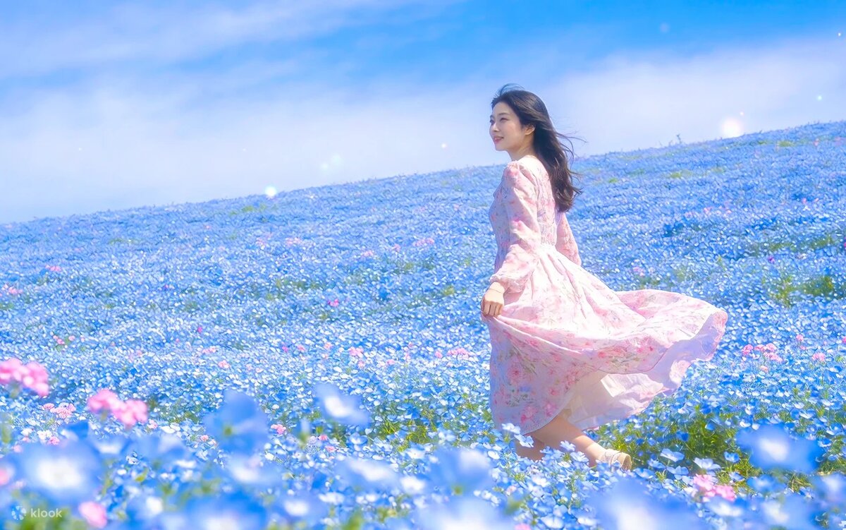 - Визуальный эффект: Густой, плотный ковёр из миллионов крошечных синих цветов создаёт иллюзию, будто небо спустилось на землю. Сочетание голубого, синего неба и океана на горизонте — это, пожалуй, самая фотографируемая панорама всей японской весны.