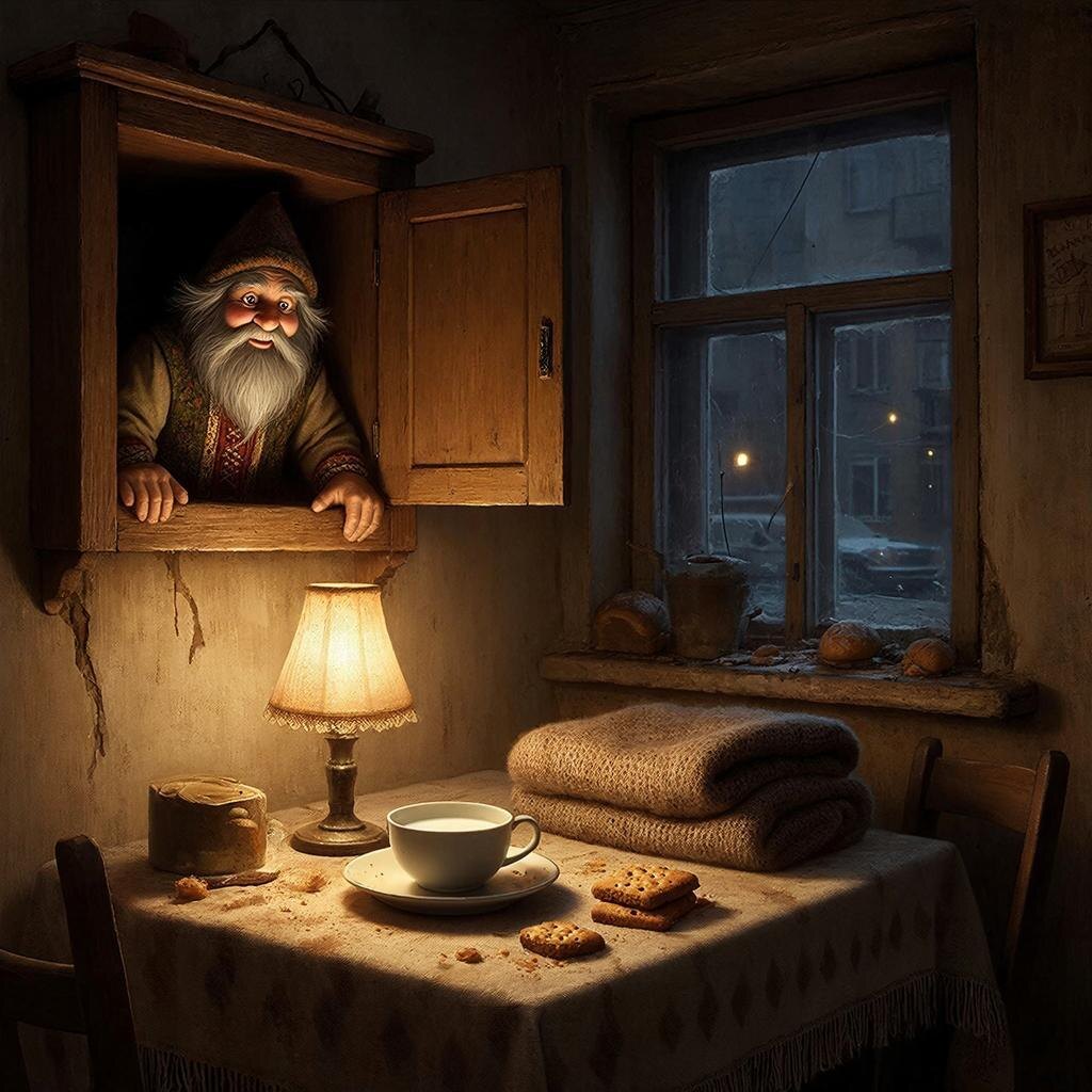 В старом доме на окраине города, среди скрипучих половиц и пыльных углов, жил домовой по имени Федот. Он был не просто хранителем очага, а настоящим мастером своего дела: следил за порядком, оберегал дом от бед и даже иногда помогал хозяевам находить потерянные вещи. Но с годами дом становился всё более запущенным, а его новые жильцы — молодая пара, Лена и Сергей — не верили в чудеса.