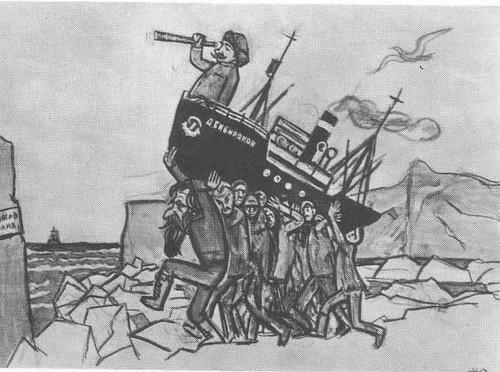 А вы знаете, что до того, как Фёдор Решетников получил две Сталинские премии за свои знаменитые картины, он заслужил орден Трудового Красного знамени, а потом орден Красной Звезды за то что … рисовал стенгазеты?! Как ему это удалось?! Да очень просто. Вопрос в том, где рисовать. Дело в том, что Трудовое Красное знамя Решетникову вручили за то, что он не только стенгазеты рисовал, но еще и работал библиотекарем, а заодно и выполнял все, что капитан прикажет на ледокольном пароходе «Александр Сибиряков». В 1932 году. Как раз в том самом рейсе, когда подняв самодельный парус после поломки гребного вала, команда «Сибирякова» смогла впервые в истории пройти Северный морской пути за одну навигацию. А потом Отто Шмидт взял Фёдора Павловича еще и в рейс парохода «Челюскин». Планировалось, что «Челюскин» тоже успеет за одну навигацию. Но вместо этого случилась челюскинская эпопея с ледовым лагерем. И Решетников тоже вместе со всей командой оказался в «лагере Шмидта», где и создавал стенгазету «