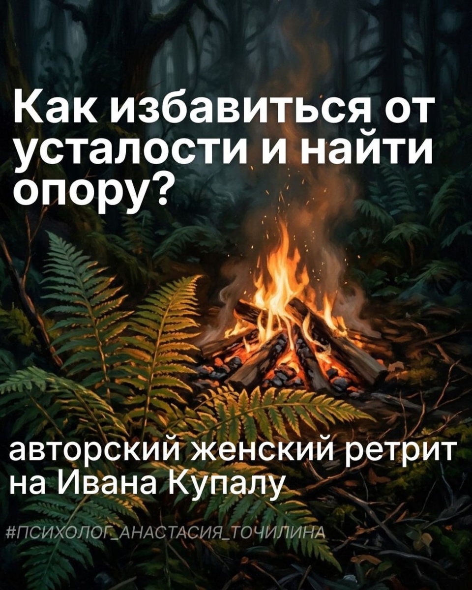 ». Подруга сказала это с таким усталым смехом, что стало немного не по себе. Неделя в тёплой стране. Море, солнце, сон без будильника, никакой работы. Всё как положено. Только вернулась — и через пару дней снова в том же состоянии. Как будто отдых был, а выдоха не было. Да, снаружи всё поменялось — другой город, другой ритм, другие люди. А внутри всё по-старому: тело напряжено, мысли крутятся, внимание всё время куда-то ускользает. Ты вроде бы ничего не делаешь — но и не отдыхаешь по-настоящему. И в какой-то момент это начинает раздражать сильнее, чем сама усталость. Потому что становится понятно: дело не в том, сколько дней ты отдыхаешь. Дело в том, что ты из этого состояния вообще не выходишь. Всё та же собранность, тот же внутренний контроль — даже когда вокруг пальмы и океан. И обычный отдых это не меняет. Он просто даёт передышку, после которой всё возвращается на свои места. Поэтому я делаю женский тренинг-ретрит на Ивана Купалу. Не как «ещё один способ отдохнуть», и не к