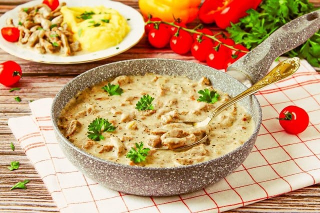 🥩🍄 Классическое русское блюдо — нежная говядина в сметанном соусе. Быстро, вкусно, празднично. Ингредиенты: Говядина (вырезка) — 600 г Лук — 2 шт. Шампиньоны (по желанию) — 200 г Сметана — 200 г Мука — 1 ст.л. Горчица — 1 ч.л. Соль, перец, масло. Приготовление: Говядину нарежьте тонкими брусочками поперек волокон. Обжарьте на сильном огне 2-3 минуты, посолите, поперчите. Снимите. В той же сковороде обжарьте лук (и грибы) до золотистости. Посыпьте мукой, перемешайте, жарьте 2 минуты. Добавьте сметану, горчицу, 100 мл воды. Прогрейте до загустения. Верните мясо в соус, прогрейте 2-3 минуты. Подавайте с картофельным пюре, рисом или пастой. 💬 Часто готовите бефстроганов? https://t.me/dachstil