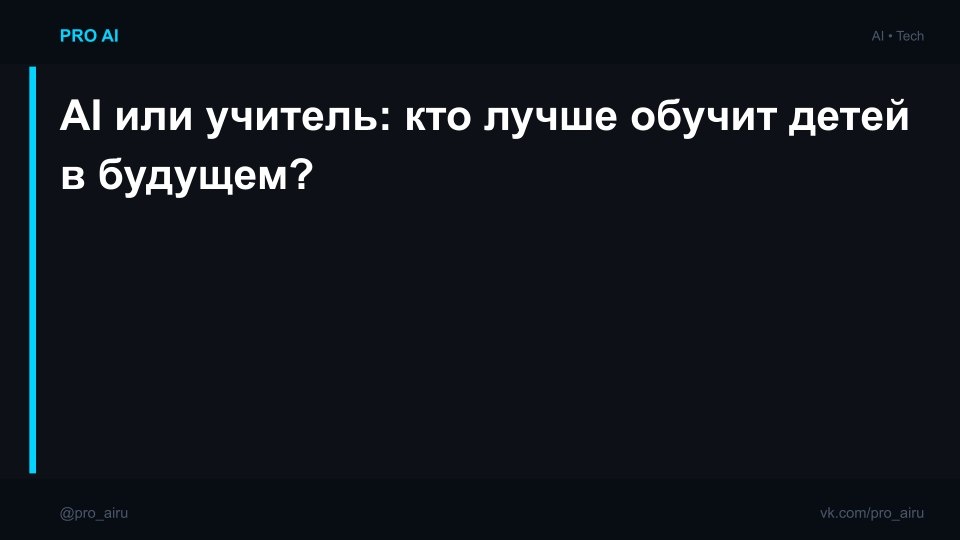 ⬇️ Минус учителю? Или новый уровень образования? Сегодня AI способен не только анализировать учебные планы, но и подстраиваться под эмоциональное состояние ребенка. Это шанс раскрыть внутренние таланты или путь к полному обезличиванию? 🤖 🤔 Поделись, как бы ты отреагировал, если бы твой ребёнок больше доверял AI, чем учителю? #образование #искусственныйинтеллект #будущее ━━━━━━━━━━━━━━━ 🔥 Подписывайся: 📘 ВК: https://vk.com/pro_airu ✈️ TG: https://dzen.ru/id/69933ce1cec3715def4523c4