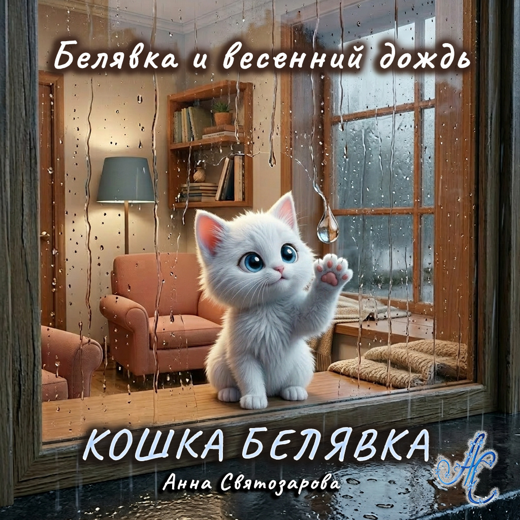 Ей стало очень смешно. Она начала ловить капельку за капелькой. Тык — и капля расплывается под лапкой. Тык — и ещё одна. Белявка прыгала по подоконнику, перебегала с места на место, хлопала лапками по стеклу и мурчала от удовольствия. Капельки были везде: наверху, внизу, посередине. Они бежали, останавливались, снова бежали, и с каждой пойманной каплей Белявке становилось всё веселее.