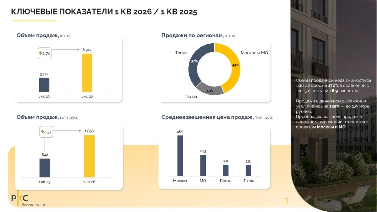 📈 Операционные результаты ГК «РКС Девелопмент» за 1 квартал 2026
