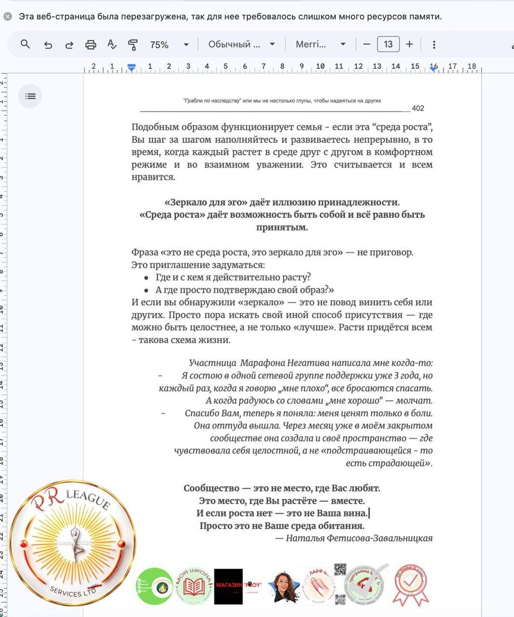 «Вам там не место» 🆚 «Там Вам не место»: ☝️тема, на которую пишу статью, чтобы каждый для себя прояснил вопрос бегства и поиска лучшего. А какая у Вас ассоциация? - что для Вас место, которое Вас наполняет, если я скажу это: Сообщество — это не место, где Вас любят. Это место, где Вы растёте вместе. И если роста нет — это не Ваша вина, просто пришла пора убедиться, что это больше не Ваше среда обитания ©️ Наталья Фетисова-Завальницкая Отмечайте для себя всегда: ❌не совсем корректный момент «Перерос позицию» (например, в карьере) ❌вообще неверное суждение «Меня там не воспринимают» (например, группа людей) ❌абсолютно ошибочное мнение «Я знаю, что достоин бОльшего» (например, субъективное ощущение) ‼️Перерасти можно, если где-то находишься долго - например, на одной должности, когда «все уже очень просто и легко до претензий». ‼️ Воспринимают так, как преподносишь себя - при некорректном подаче себя при при перемещении в другую группу вероятно похожее ощущение и результат. ‼️ Самоц