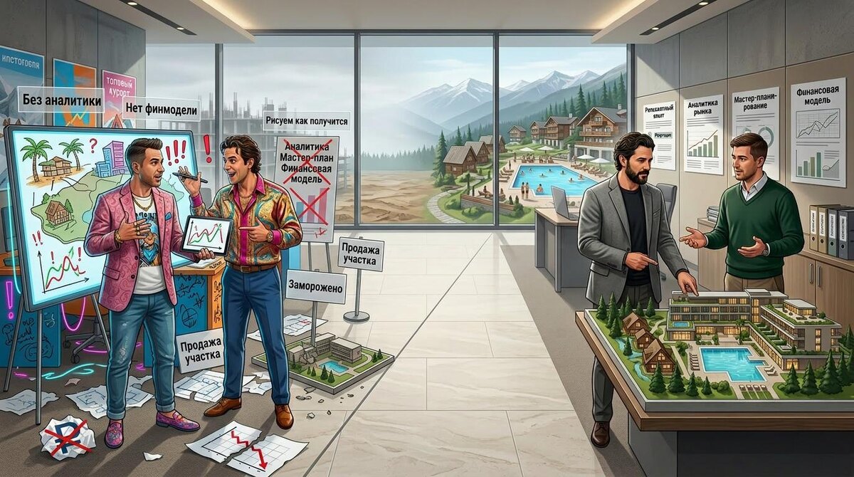 Поэтому более качественный подход такой: сначала с участком работают независимые концептологи, у которых нет «шор» в виде уже привычной модели управления. Они исследуют рынок, смотрят на участок, считают разные сценарии монетизации и иногда честно пишут, что гостиница здесь вообще не нужна, а нужен другой формат. И только после того, как найден оптимальный формат и собрана бизнес‑концепция с мастер‑планом и финансовой моделью, в процесс приглашается управляющая компания, уже под конкретный, просчитанный продукт, в котором она сильна.