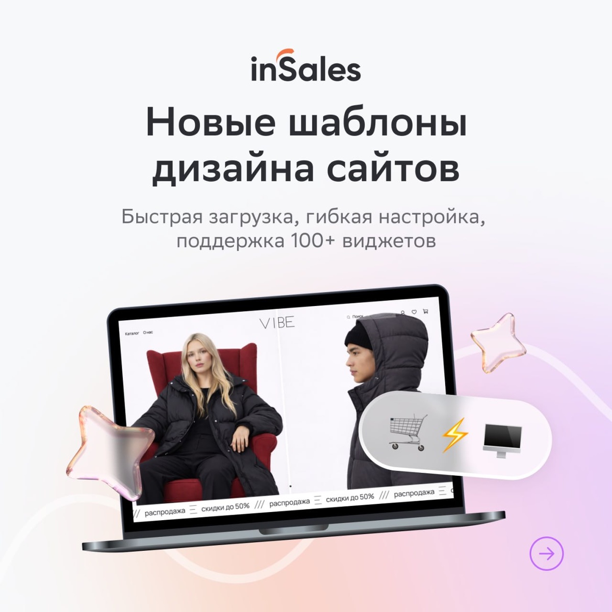 💻 Новые шаблоны быстрее грузятся, поддерживают живой поиск и reCAPTCHA, позволяют менять верстку любого блока и работают со 100+ виджетами. Каждый шаблон настроен под конкретный тип магазина — можно сразу запускаться и не тратить время на оформление с нуля. Листайте карточки с вариантами VIBE, Cream и Minimalism. Остальные варианты смотрите на сайте платформы: Смотреть шаблоны 🤍 TG l VK l MAX