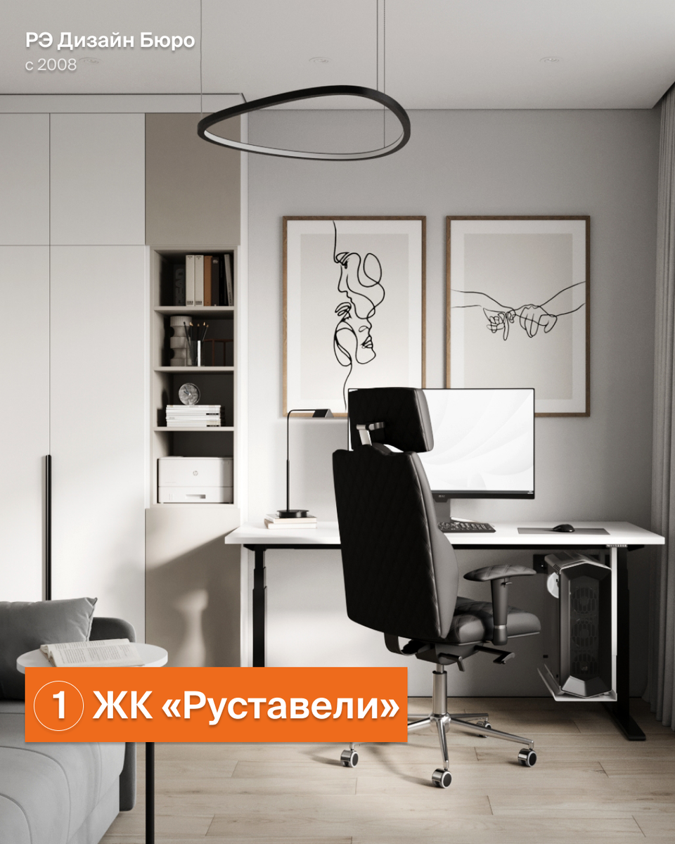 Домашний офис в 2026 — это не стол из каталога. Это система жизнеобеспечения. Два часа за ноутбуком на обеденном столе — и вот он: туман в голове, ноющая поясница и раздражение, которое вы списываете на задачи. Но задачи ни при чём. Вы платите налог на плохой ремонт — своей продуктивностью, фокусом и здоровьем. Мы проектируем рабочие места внутри квартир. Вот как это выглядит на реальных объектах. 1️⃣ ЖК «Руставели» — стол с электроприводом, память на три положения: сидя, полустоя, стоя. Стул-экзоскелет для позвоночника — вы физически не сможете «сложиться» к четвёртому часу работы. Кабинет отделён от спальни акустическим зазором через гардеробную — созвон в 2 ночи без шанса разбудить партнёра. 2️⃣ ЖК «Vangarden» — трёхметровая столешница из шпона под три монитора, единая плоскость без стыков. Высота рассчитана под рост заказчика до миллиметра. Рядом — зона разгрузки: диван в метре от экранов. 3️⃣ ЖК «Испанские кварталы» — холодная лоджия превращена в рабочую капсулу. Заменили остеклен