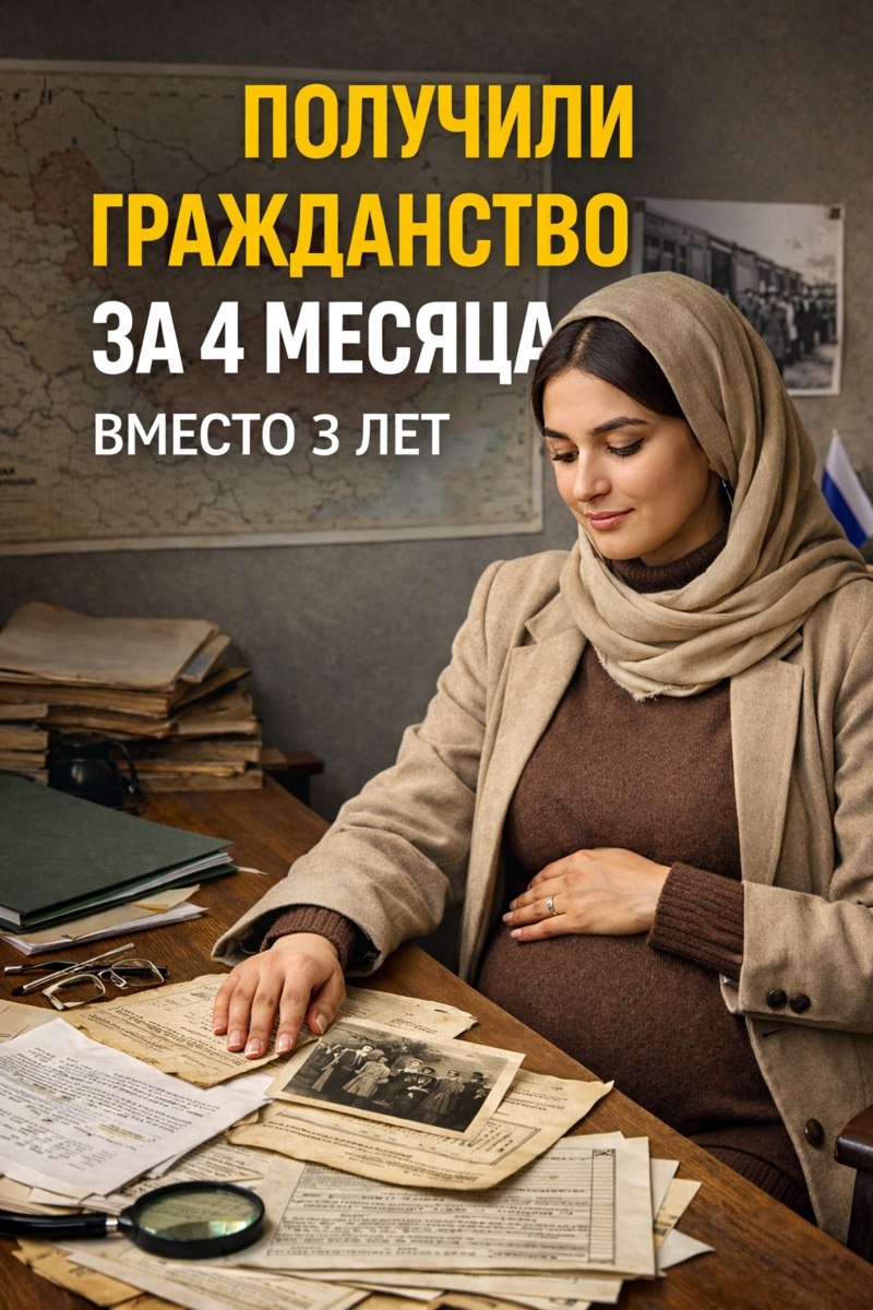 Конец 2025 года. На приём приходит Амина — гражданка Таджикистан. В браке с гражданином России около полугода, находится по патенту. Плюс — она в положении. Запрос понятный: дождаться рождения ребёнка и дальше выходить на гражданство. Начинаем разбирать. По браку — рано: новые требования, полугода недостаточно. Через ребёнка — да, но это время. Патент — временно, не решает задачу. В разговоре всплывает деталь: бабушка — ингушка, рождена в РСФСР, депортирована в 1944 году, позже семья оказалась в Таджикистане. Документов нет. Только семейная история. Дальше — уже не стандартная работа. Приняли решение идти через подтверждение происхождения и рассматривать вариант через программу переселения. Первое — архивы. Стандартные сроки — от 1 до 3 месяцев. Любая неточность в запросе = потерянное время. Амина хотела писать сама. Мы остановили. Архив — это не «спросить». Это правильно задать вопрос. Мы готовили запросы: — точные формулировки по месту рождения в РСФСР — учёт разных напи