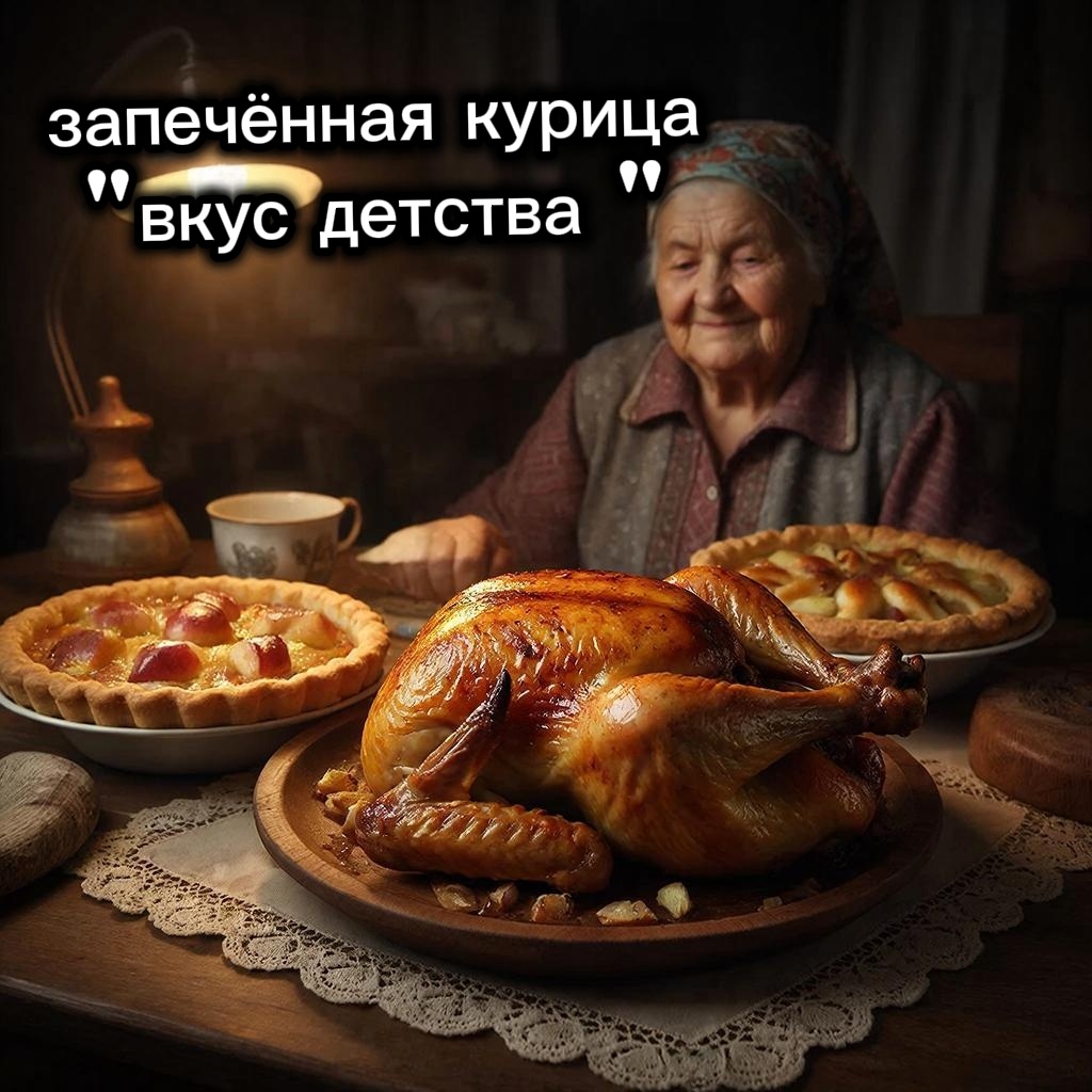 Я закрываю глаза и вижу нашу старую кухню, залитую тёплым, медовым светом. На столе, накрытом знакомой клеёнкой, уже стоят глубокие тарелки. А из духовки бабушка достаёт главное сокровище вечера — румяную, с янтарной корочкой курицу. От неё исходит такой густой, сытный дух, что кружится голова: пахнет чесноком, укропом и чем-то неуловимо родным, что можно назвать только одним словом — дом.