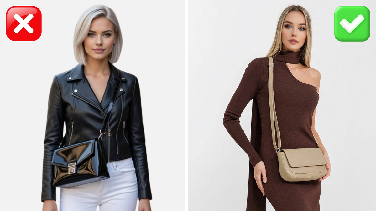 Сумка через плечо – один из самых удобных форматов. Освобождает руки, подходит на каждый день, легко вписывается в городской ритм. Казалось бы, что может пойти не так? Но именно с такими сумками чаще всего возникают проблемы. Одна деталь – и образ начинает выглядеть не к месту: то слишком просто, то не по возрасту, то вообще с ощущением взяла первое, что попалось. Разберем три самые распространенные ошибки, которые допускают почти все – и посмотрим, как их легко избежать. Это самая частая и при этом самая незаметная ошибка. Слишком длинный ремень создает ощущение небрежности: сумка оказывается где-то ниже бедра и начинает тянуть силуэт вниз. Слишком короткий – тоже плохо: он пережимает силуэт и может напоминать подростковый вариант. Ориентир простой: сумка должна находиться в районе талии или чуть ниже. Посмотреть на сайте → В этом положении она выглядит аккуратно, не мешает движению и сохраняет пропорции фигуры. Посмотреть на сайте → Мягкие, бесформенные модели часто выглядят удобными