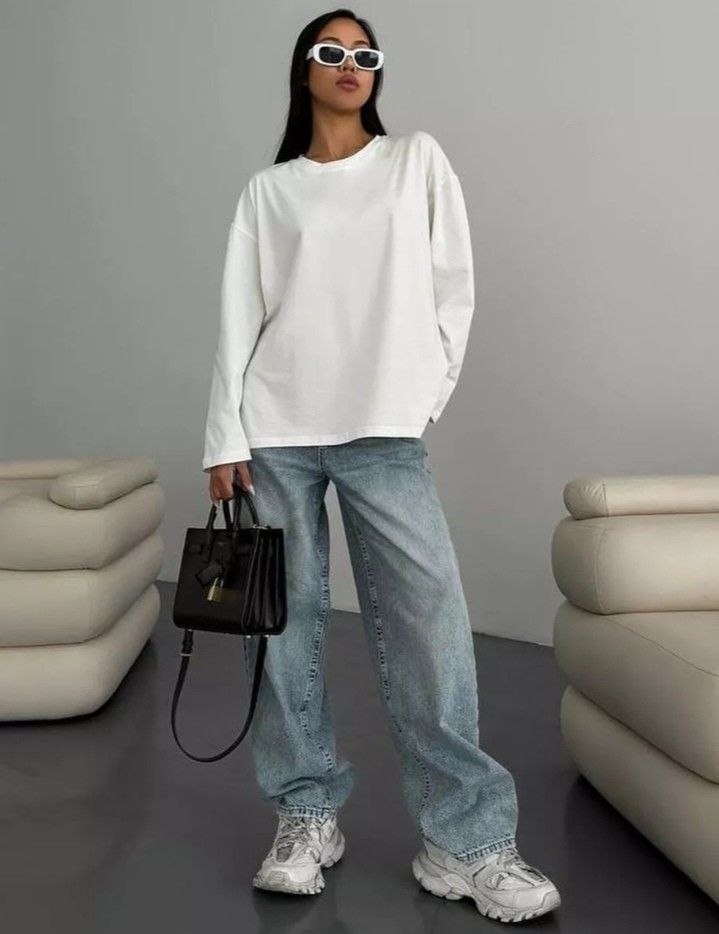 В прошлом опросе больше всего голосов набрал пункт «комфортные образы на прогулку». Вы просили — я отвечаю! Как я собираю образ на прогулку (моя личная схема): 1. Сначала выбираю самую удобную обувь — чем больше предстоит ходить, тем удобнее она должна быть. 2. Потом подбираю низ, который подходит к этой обуви. 3. И уже затем — верх, который поддержит общую стилистику. Всё просто! 😌 Из обуви это могут быть: кроссовки, кеды, удобные балетки, лоферы. Из низов — всё, что угодно: юбки, брюки, джинсы, спортивные штаны, лосины, шорты и даже удобные платья. Всё зависит от ваших целей и предпочтений. А теперь — главный герой этого поста! ⭐ Хочу обратить ваше внимание на один элемент одежды, который подойдёт абсолютно ко всем низам и к любой обуви. Универсальный солдат в нашем гардеробе — лонгслив! Как это работает: · Надеваете кроссовки/кеды или даже просто сланцы · Добавляете любой низ (совсем любой!) · Сверху — оверсайз-лонгслив (можно чуть заправить спереди или носить навыпуск) Об