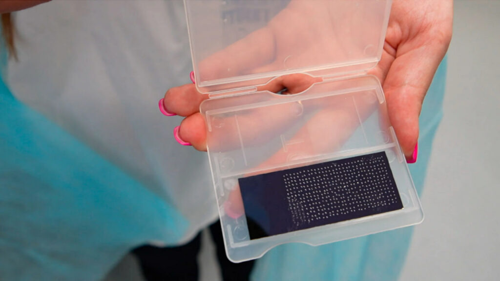 Подробности уникальной разработки рассказали в эфире «Первого информационного телеканала». На уникальном биочипе находятся мельчайшие точки, которые содержат аллергены. Всего их 200 штук. На него наносится кровь пациента, а затем добавляются необходимые реагенты. Подобным образом специалист устанавливает потенциального виновника проблем. — Береза, полынь, тимофеевка, ежа – огромное количество аллергенов. На чипе аллергены растений, то есть пыльцевые аллергены. Здесь аллергены пищевых продуктов, аллергены яда перепончатокрылых, здесь аллергены даже клещей, — уточнил директор Института биофизики и клеточной инженерии Национальной академии наук Андрей Гончаров. Тест абсолютно безболезненный, быстрый и точный. Сейчас чип проходит регистрационные испытания. К концу года его планируют внедрить в практику: сначала на базе Института биофизики и клеточной инженерии Национальной академии наук, в последующем указанный чип смогут использовать в лабораториях по всей Беларуси. Также думают и над экс
