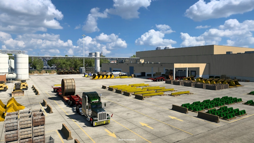 В сегодняшнем блоге мы хотели бы рассказать вам о пользовательских складах и совершенно новых компаниях, в которые вы будете доставлять грузы в нашем грядущем дополнении Illinois для American Truck Simulator. Давайте посмотрим! Экономика Иллинойса — одна из самых диверсифицированных в США, штат имеет долгую историю производства широкого спектра товаров. Он также является крупным производителем неэлектрического оборудования, такого как промышленное и строительное оборудование, которое входит в число важнейших экспортных отраслей штата. Как и всегда, при выборе депо для этого дополнения к карте мы стремились отразить реальный мир, поэтому вы увидите представителей этих отраслей как в наших новых компаниях, так и в уже существующих. Одна из них — Antlion, крупный завод строительной техники в Пеории. Оттуда вы можете доставить технику прямо с производственной линии новому дилеру GroundBreaker в Куинси. Если вы любите лодки, то вам повезло. Озеро Мичиган — популярное место отдыха в штате, и