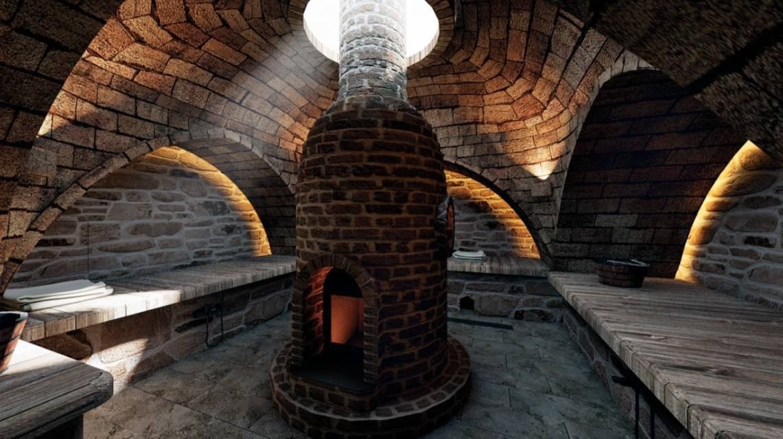 Рендеры Siberia в Москве на Бауманской Баня №2. Искер — самый большой комплекс для компании, где вшита историческая легенда - вмещаемость до 12 гостей - 204 м² приватного пространства - гостиная с камином на дровах - 2 гендерные раздевалки - парная с печью на дровах - мокрая зона с купелями - массажный кабинет - 2 туалета - душевые Искер — первая столица богатого Сибирского ханства: город-легенда, который сначала сдался Чингисхану, а позже был взят Ермаком. Сегодня он почти полностью смыт водами Иртыша — и существует как миф. Информация из открытого источника