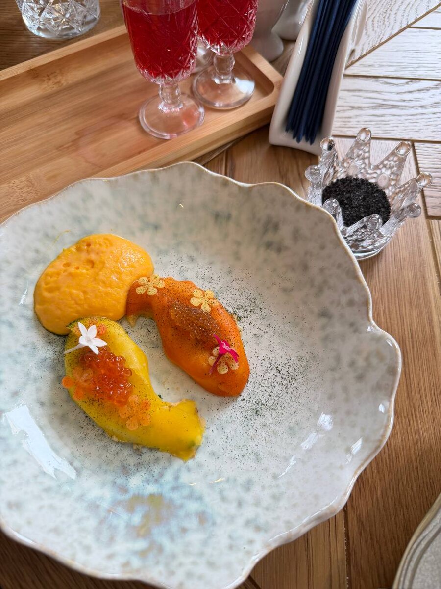 Добрая сказка «По Щучьему веленью» в интерьере и каждом блюде 🤌🏼 Холодец в виде гриба на лесной полянке, грядка из морковок в десерте, корона с форшмаком и лужайка коров на Тартаре 🙌🏼 А супы… это отдельная песня!!!