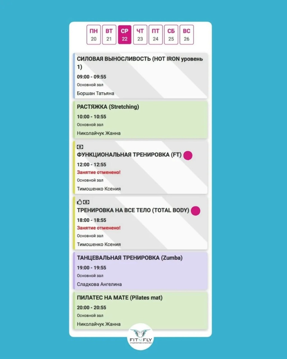 👉 платные классы Ксении в 12:00 и 18:00 отменяются — тренер на больничном.
