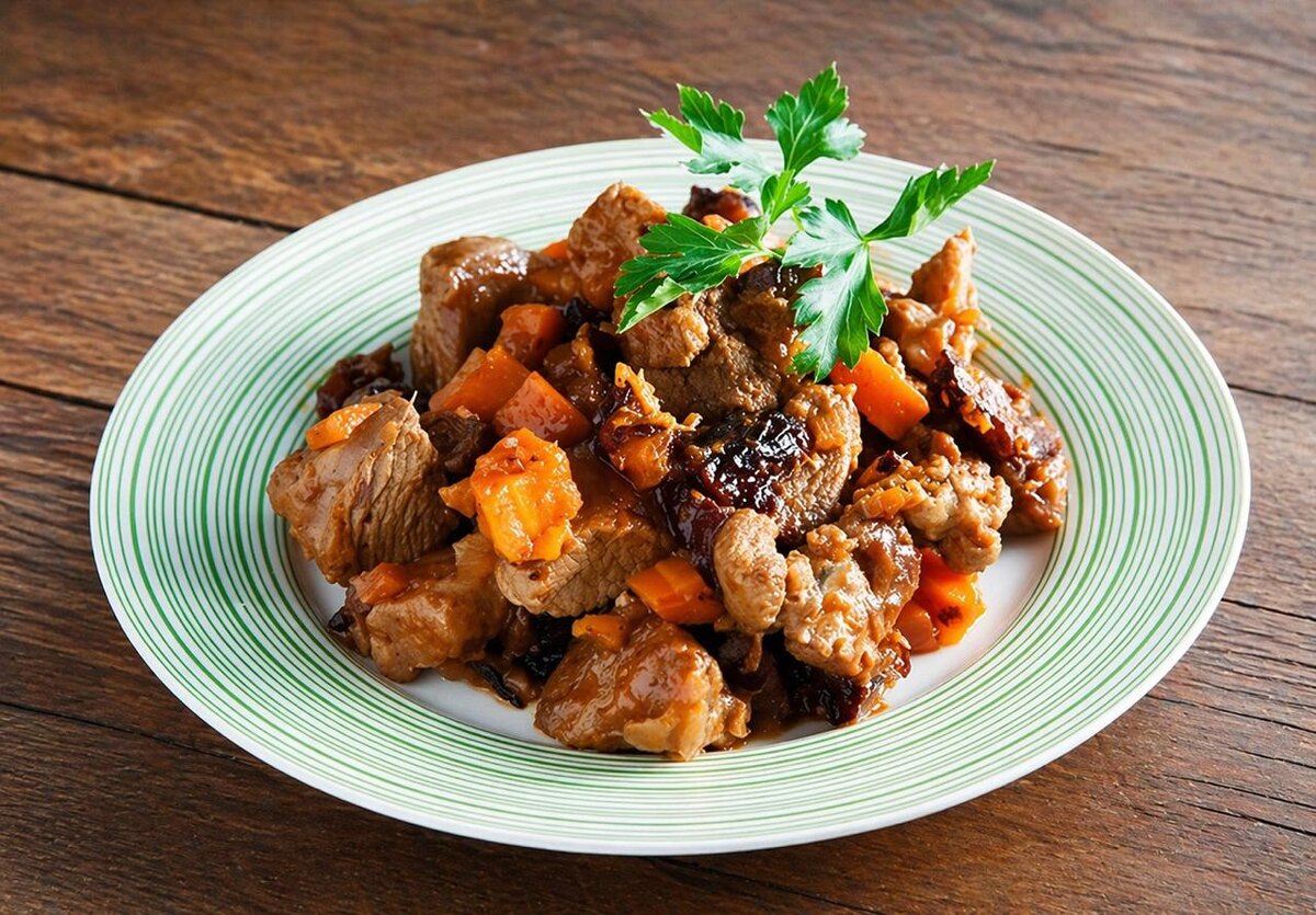 Пряное, яркое и насыщенное блюдо с выразительным ароматом - идеальный выбор для холодной погоды. Оно согревает, отлично насыщает и мгновенно поднимает настроение. Ингредиенты 📌филе бедра индейки 900 г 📌морковь 1 шт. 📌чернослив без косточки 100 г 📌лук репчатый 1 шт. 📌корень имбиря 2 см 📌сок лимона 20 мл 📌оливковое масло 2 ч. ложки 📌приправа для курицы 0,5 ч. ложки 📌соль по вкусу Как готовить 1. Филе бедра порежьте некрупными кубиками 2. Очистите лук и морковь, нарежьте овощи и чернослив мелкими кубиками 3. Лук обжарьте до золотистости, выложите на тарелку. В оставшемся масле слегка обжарьте индейку 4. Верните в сковороду лук, добавьте морковь и чернослив, тертый имбирь. Также добавьте приправу для курицы и лимонный сок, перемешайте и готовьте под крышкой около получаса на слабом огне. При необходимости добавьте немного воды 5. Готовую индейку подавайте с рисом или свежими овощами