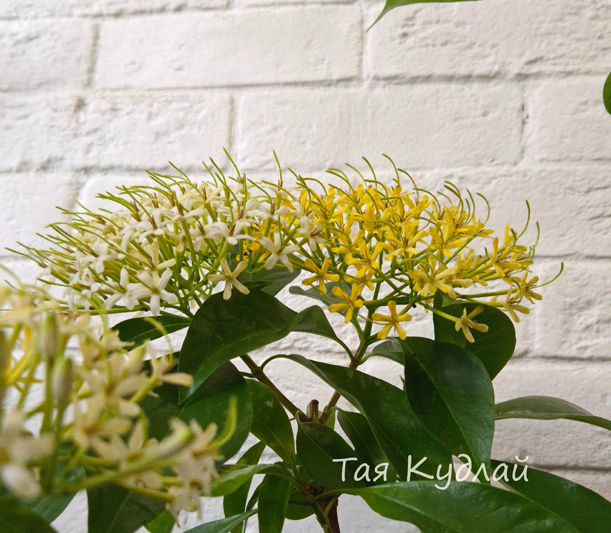 Таррена Уоллича чем старше, тем обильнее цветение, крупнее соцветия Этой моей таррене около 10 лет. Я ее периодически довольно сильно подрезаю, она остается в размерах до метра и горшке около трех листров. В этом году подумываю дать ей волю и растить крупное дерево-таррену Корни обрезаю почти при каждой пересадке, формируется тем самым компактная и более продуктичная корневая система В этом году она начала впервые растить прикорневые попросли от центрального ствола