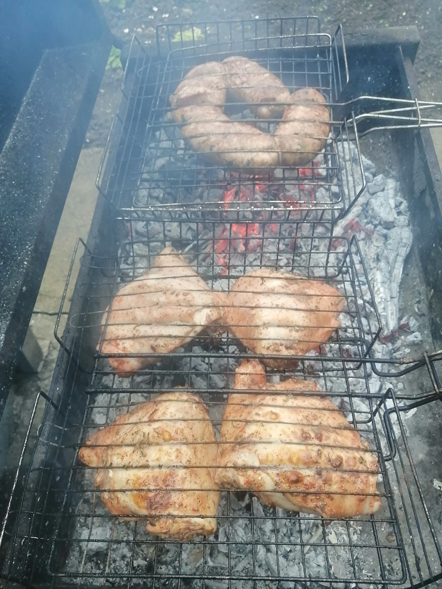 А вечером когда уже можно расслабиться , муж раздвигает мангал. Мы сидим около костра.