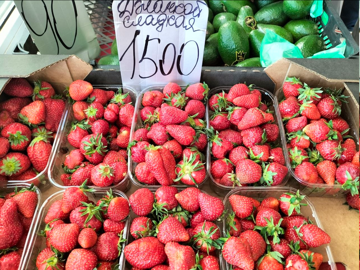 Интересно? Смотрите фото - Написано, что из Джанкоя, вполне возможно. Далее цена на не крымскую клубнику - Клубника в Крыму из Азербайджана продается в два раза дешевле местной. Насколько они вкусные в это время, сказать не могу. Воздержался от покупки по такой стоимости. Торгуют азербайджанцы. На вопросы о цене, начинают охать, вздыхать и перечислять - "Вы видели доллар почем? А евро?. А еще Израиль там мутит, все плохо, топливо дорожает, попробуй привези её." И все с таким видом, как будто сами выращивают и везут к прилавкам эту клубнику, авокадо и бананы с апельсинами. ...Местные фермеры типа того!! А вот ягода, которая в